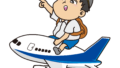 飛行機に乗る男の子のイラスト(旅行・出発)