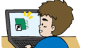 Windowsアップデートが終わらなくて困っている男性のイラスト