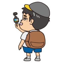 旅行先でVlog撮影をする男性のイラスト(右向き)